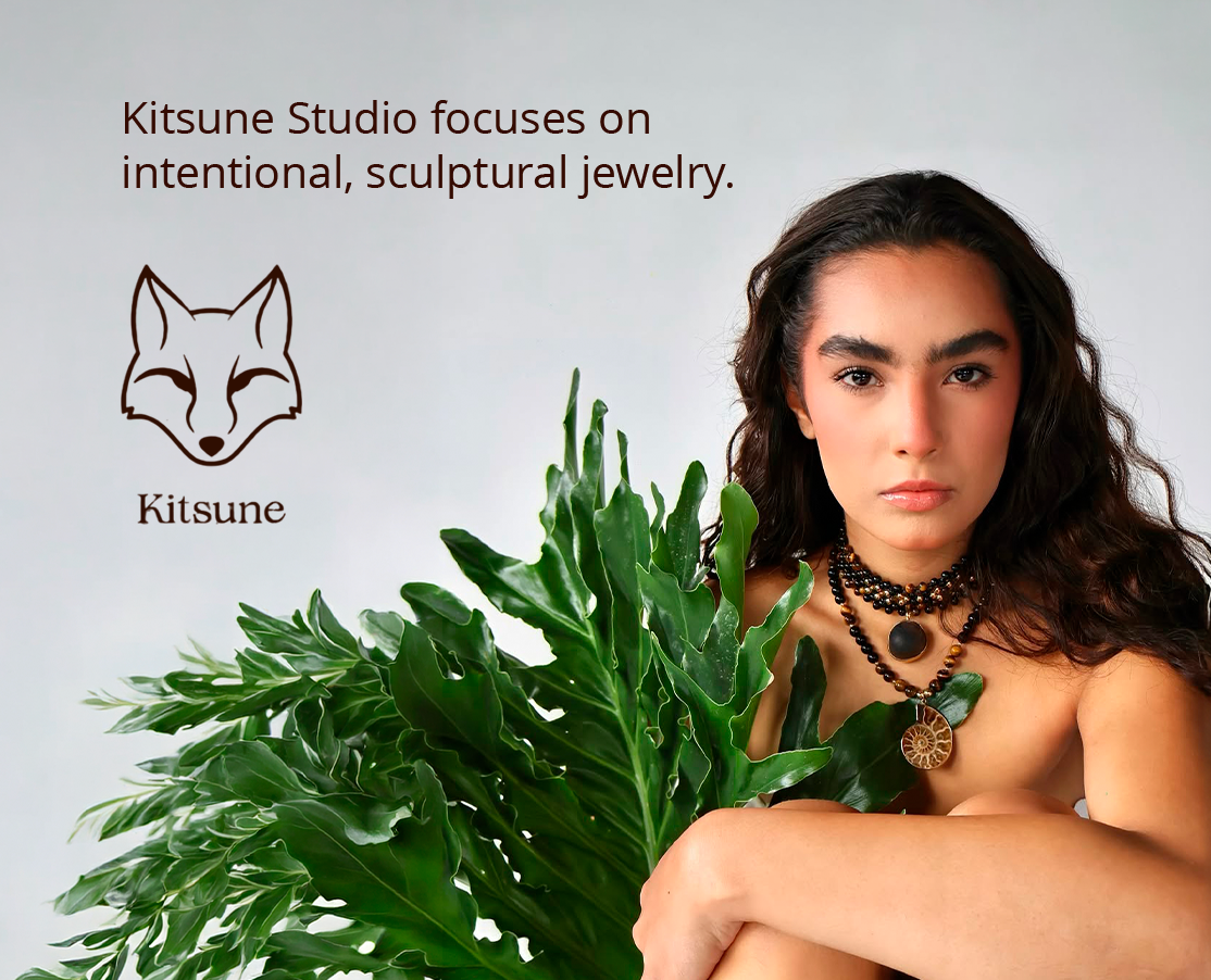 Founded by a recently married couple, Kitsune Studio is shaped by a deeply personal approach to creation. Born in Venezuela, the brand transforms natural elements into hand-beaded necklaces that feel sculptural, expressive, and quietly powerful. Each piece is created bead by bead, reflecting patience, devotion, and a reverence for craftsmanship.